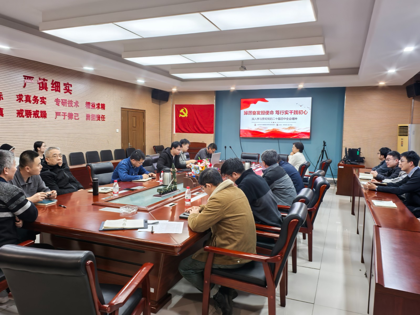 首先,陸衛(wèi)國同志傳達領(lǐng)學(xué)了黨的二十屆四中全會精神,回顧了從黨的七屆四中全會到二十屆四中全會歷屆會議精神,介紹了本次全會的概況,傳達了習(xí)近平總書記的重要講話精神,特別是總書記提出的“推動高質(zhì)量發(fā)展,最重要的是加快高水平科技自立自強”,作為國家戰(zhàn)略科技力量的一員,踐行習(xí)近平總書記系列重要講話精神責(zé)無旁貸。